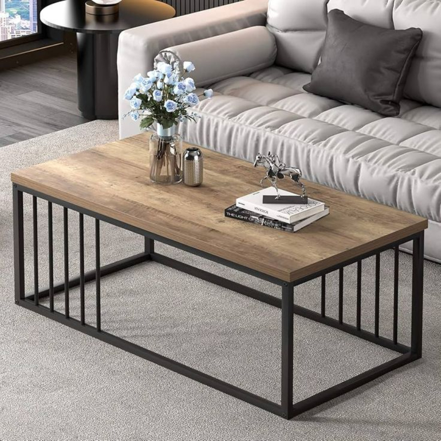 Bring home a perfect blend of rustic warmth and industrial charm with this beautifully crafted center table. The rich wooden-finish tabletop adds a natural and inviting touch, while the sleek black metal frame enhances its modern aesthetic.