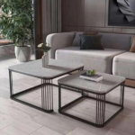 Upgrade your living room with this sophisticated nesting center table set designed for modern interiors. Featuring smooth marble-finish tabletops and a sleek black metal frame, this set offers a perfect blend of luxury and minimalism.