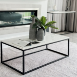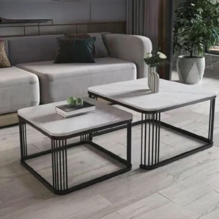 Add refined elegance to your living room with this sleek rectangular center table. Designed with clean lines and a modern silhouette, the marble-finish tabletop paired with a slim black metal frame creates a perfect balance of sophistication and simplicity.