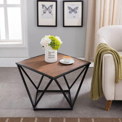Modern geometric metal frame aur wooden top ke sath stylish side table. Living room, bedroom aur small spaces ke liye perfect compact design.